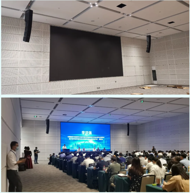 考慮到會場空間及環境,在每間650㎡的會議廳演講臺兩側都各吊掛1只M-FXA FS與4只M-FXA組成的無號角有源線陣列系統。會議廳后方采用流動安裝的方式,各堆疊4只M-FXA和1只M-FXA SUB作為主擴系統。