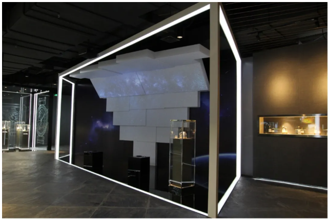 本工程飛亞達博物館博物館分為一層和二層兩個部分。一層主要以企業(yè)展廳為主,可用面積為700㎡左右。展示內(nèi)容囊括了飛亞達企業(yè)軌跡及品牌產(chǎn)品推介兩部分,以飛亞達品牌時間線為綱,通過燈光和投影的配合,展現(xiàn)出“時間簡史”、“逢時而生”、“審時而動“、“應(yīng)時而顯”、“馭時而創(chuàng)”五大主題區(qū)域,演繹出飛亞達的企業(yè)崛起之路。在這里,觀眾可以感受到飛亞達對時間的認知,對生活的主張,深刻體會到飛亞達品牌的內(nèi)涵底蘊和工匠精神。