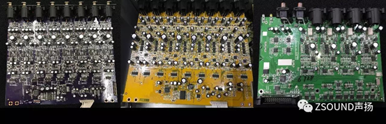 通過上述測試對比,我們可以基本判斷,在各項性能上,C的指標最高,A其次,B型號最低。這些指標對用戶的意義是什么呢?——是音質的差別,而這背后是電路設計和電路元器件的選用上差別。對于數字調音臺來說,話放的電路設計和元器件選用,A/D、D/A轉換芯片,這些很大程度上決定了其性能。入門級的調音臺為了實現(xiàn)大眾化的價格,往往不得不在音質和成本之間折中。我們分別將手頭的3個型號的調音臺的進行拆機,分別看看其電路設計和元器件用料。