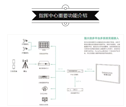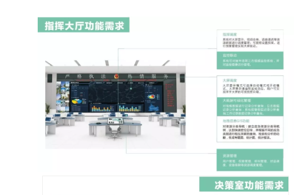 綜合指揮中心是一個(gè)集預(yù)案、視頻、圖片、語(yǔ)音、地理位置等信息為一體,以信息網(wǎng)絡(luò)為基礎(chǔ),各系統(tǒng)有機(jī)互動(dòng)為特點(diǎn)的城市信息化基礎(chǔ)設(shè)施。通過(guò)集成的視頻監(jiān)控系統(tǒng)、GIS信息系統(tǒng)、網(wǎng)絡(luò)通訊系統(tǒng)和應(yīng)急聯(lián)動(dòng)系統(tǒng)將公安、消防、衛(wèi)生、交通等應(yīng)急指揮與調(diào)度集成在一個(gè)管理體系中,通過(guò)共享指揮平臺(tái)和信息平臺(tái),實(shí)現(xiàn)集中接警、及時(shí)研判、快速響應(yīng)、統(tǒng)一指揮和聯(lián)合行動(dòng)。