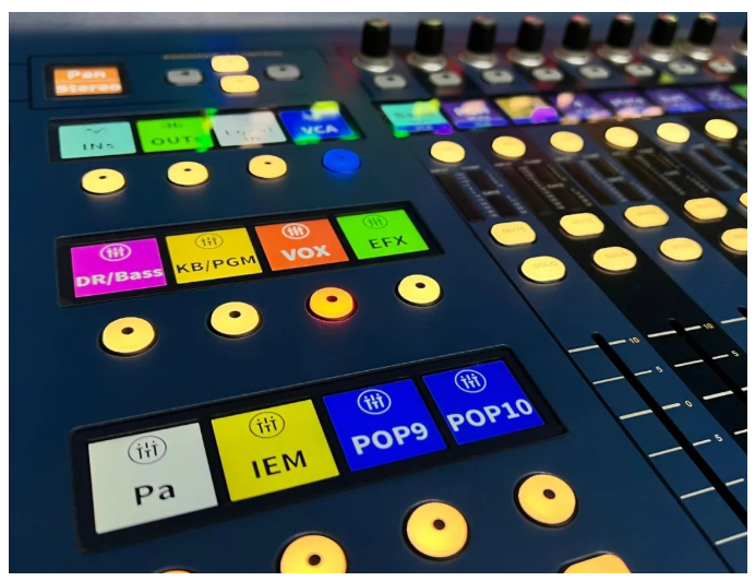 不僅如此,余老師在這場活動對于HD96-24的POP編組尤為歡喜。因為此次活動是PA、MONITOR和OB三位一體,所以調試工作就變得繁瑣,而HD96-24繼承了MIDAS調音臺獨有的POP編組功能,可將所有通道根據使用習慣隨意布局在不同推子層上,再配合上精確的多點觸控顯示屏,讓調音師能隨意地進行通道切換,減少許多繁瑣的工作步驟。