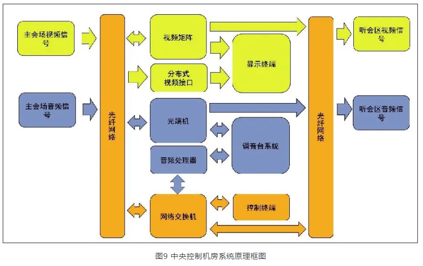 主會(huì)場本地的音視頻信號(hào)匯總至中央控制機(jī)房。