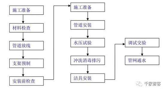 給水系統(tǒng)施工工藝流程圖: