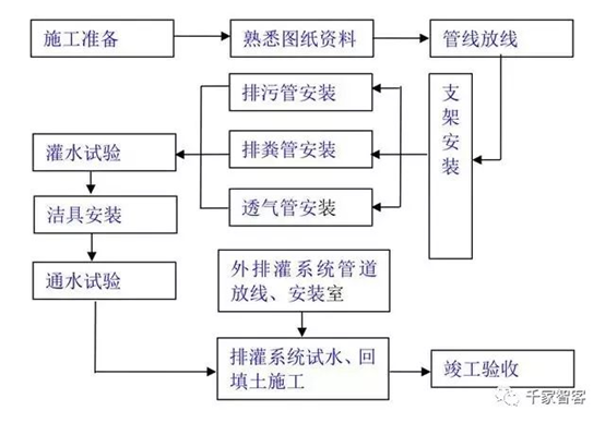 排水系統(tǒng)施工工藝流程圖: