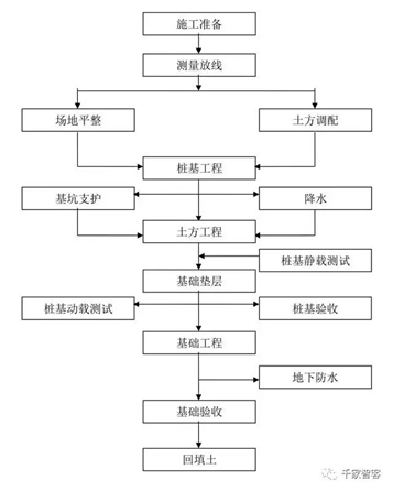 土建基礎(chǔ)工程主要工藝流程: