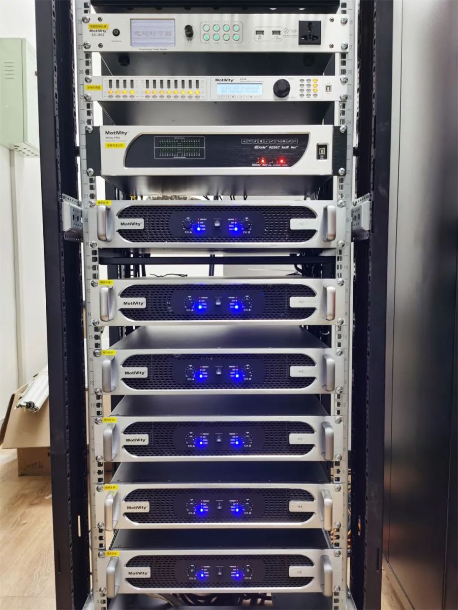 為了保障整個擴聲系統(tǒng)的效果與穩(wěn)定性,讓系統(tǒng)的處理能力和工作效率更加出色,現(xiàn)場搭配使用了H系列功放(H2/H3/H6)、DP48和Stride-Pro數(shù)字音頻處理器、MX3232視頻混合矩陣、SC-902電源時序器、MD1810數(shù)字調(diào)音臺等設備。
