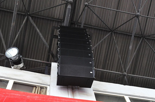 為保證場內各個區域聲壓級都有較好的均勻度覆蓋,主擴聲系統采用16只Wharfedale的WLA-312F雙12〞三分頻防水線陣分別以左、右懸掛的形式分為兩組均勻分布于觀眾區。WLA-312F采用 1.4"(音圈)釹鐵硼鈦膜壓縮式高音設計,低頻飽滿且富有彈性,高頻明亮具有穿透力,且具有較強的指向性控制,能夠靈活控制聲場覆蓋區域,其高靈敏度、高聲壓級、寬頻率響應以及出色的投射能力,能提供出眾的中頻指向性控制和清晰的語音重現,以使聲像更精準。